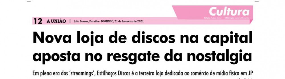 A Estilhaços discos sendo citada no jornal a União como uma das lojas de vinil disponíveis em João Pessoa, pelo