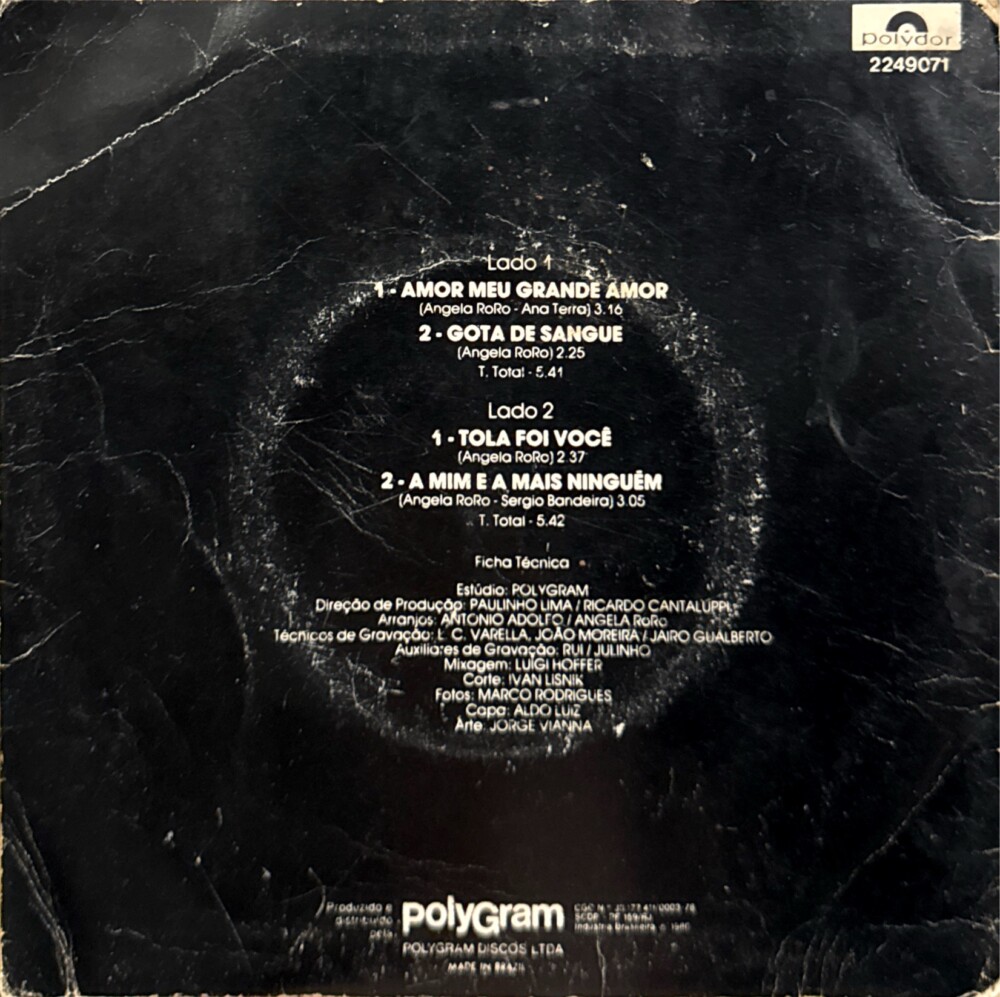 Compacto com 4 faixas do álbum de estreia da cantora brasileira Ângela Ro Ro, lançado oficialmente em 1980 pela Polydor.
