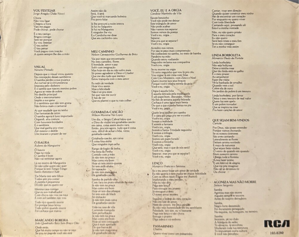 Clássico do samba na voz de Beth Carvalho, acompanhada por uma super banda: Dino, Mão de Vaca, Jorge Aragão, Copinha, Neco, Luizão, Chiquinho do Acordeon, Papão, Wilson das Neves…