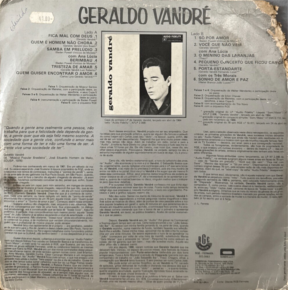 Compilado com as primeiras gravações de Geraldo Vandré presentes no seu álbum de estreia de 1964, além do compacto de 1966 e do 78 RPM de 1961.