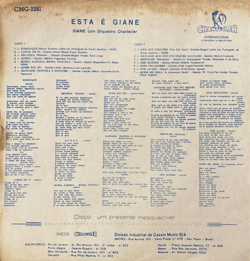 Giane – Esta É Giane A Voz Doçura: Dominique (1964)