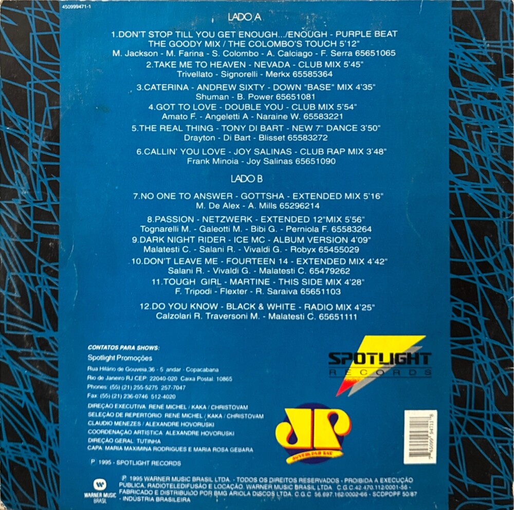 Rara coletânea em vinil lançada em 1995 com os remixes internacionais mais tocados na rádio Jovem Pan.