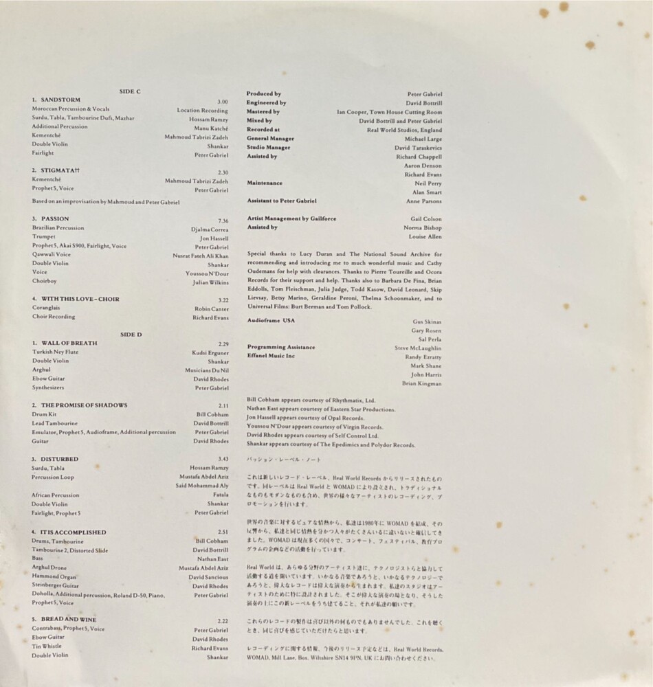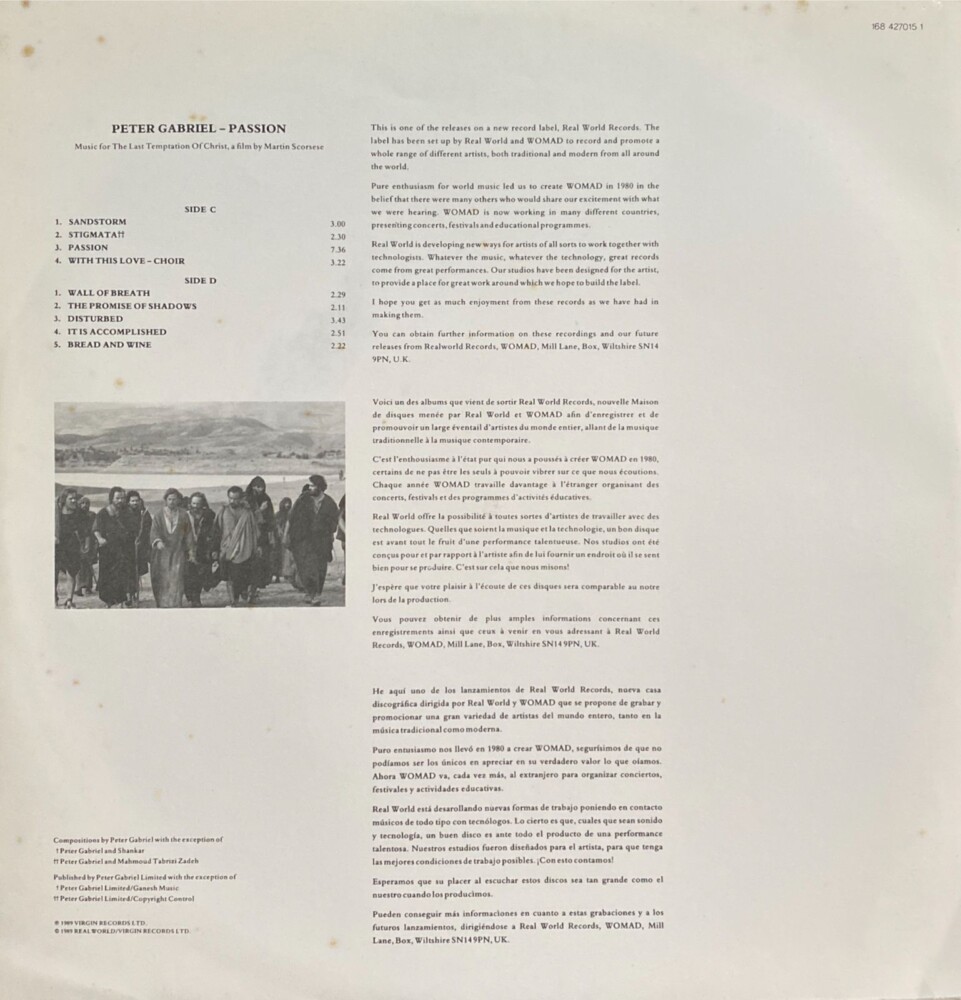 Peter Gabriel – Passion: Trilha Sonora do Filme “The Last Temptation Of Christ” (duplo)(1989)