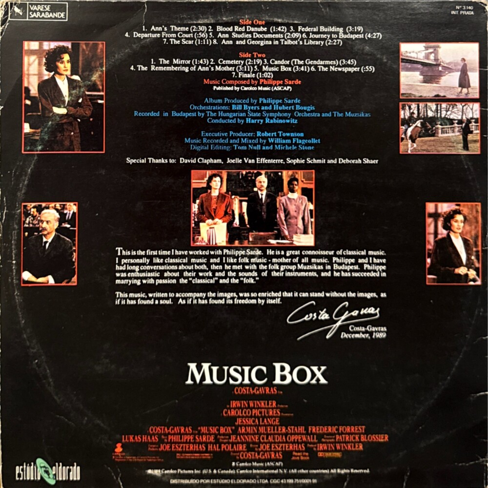 Philippe Sarde – Trilha Sonora Original do Filme “Music Box / Muito Mais Que Um Crime” (1989/1990)