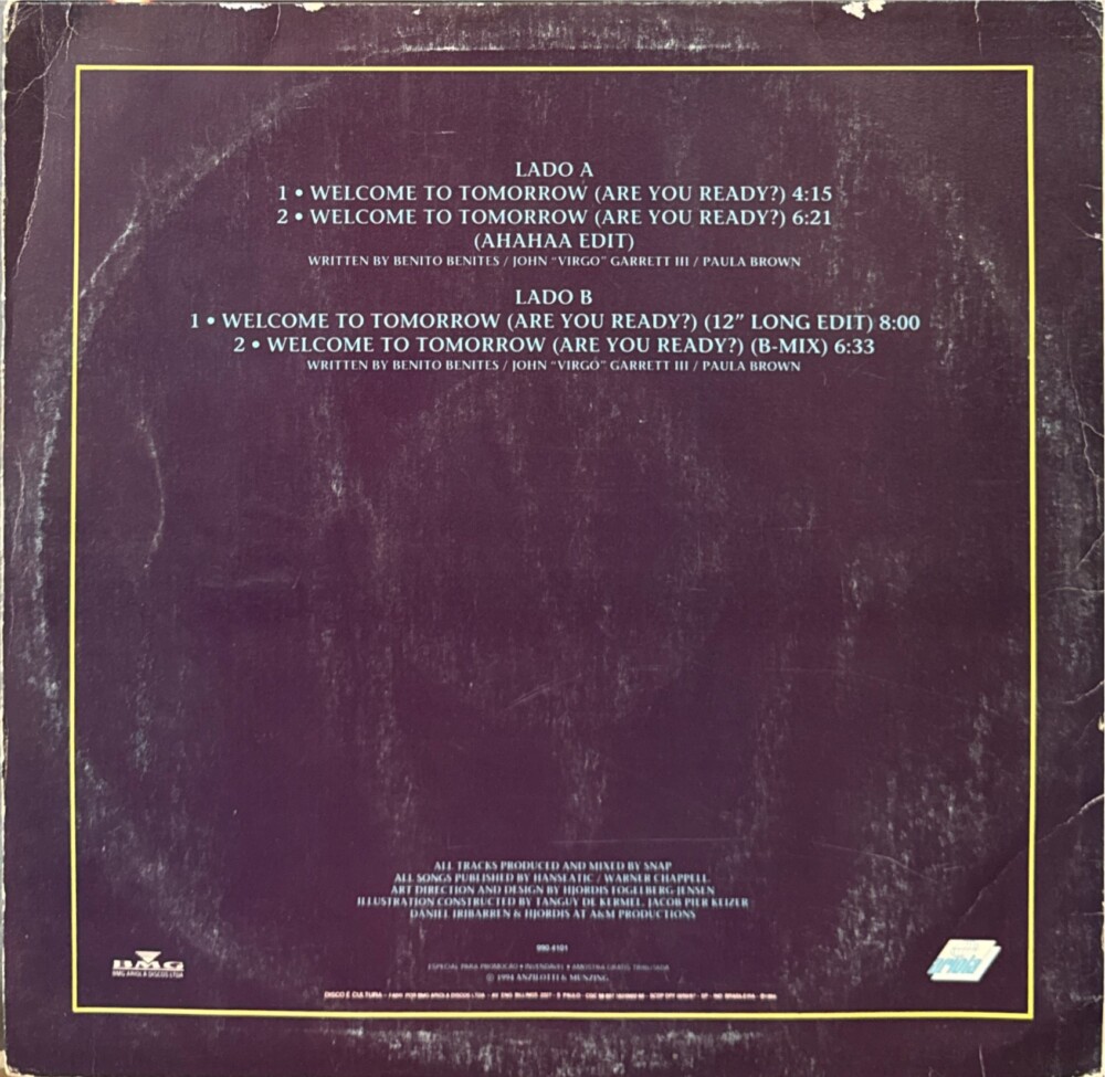 Single 12″ do Snap! Feat. Summer da faixa “Welcome To Tomorrow (Are You Ready?)”